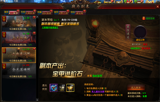 1.1 大青云世界中共有三种副本,不同副本在醒目位置标注出该副本的产出。