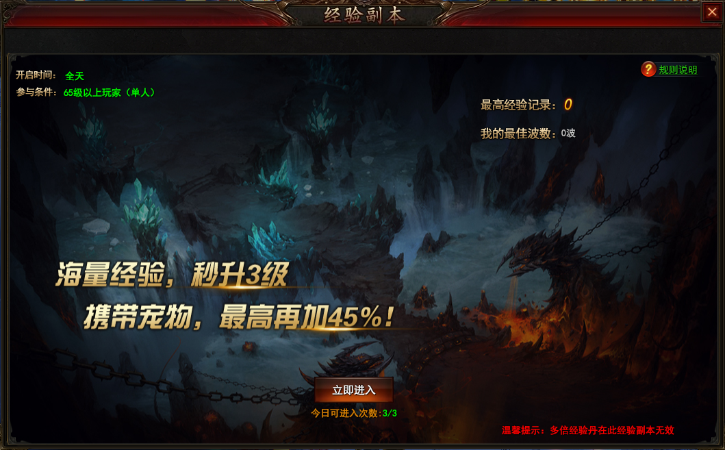 l 第三种:经验副本,玩家每日可免费挑战2次,通关该副本可以获得海量经验,快速提升等级。
