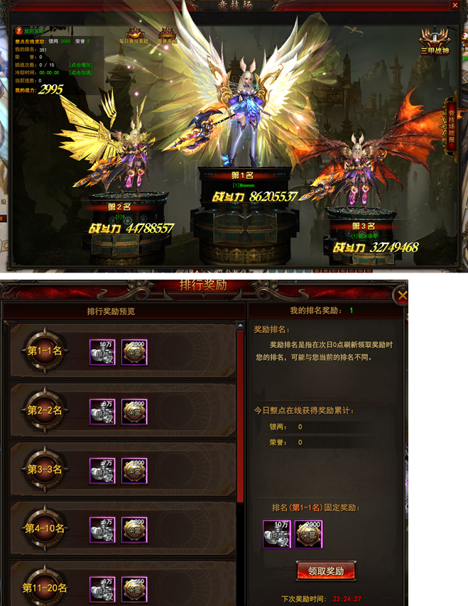 1. 玩家可以在竞技场内挑战其他玩家,挑战比自身排名高的玩家,胜利后可提升排名,每日将根据玩家的竞技排名发放排名奖励。
